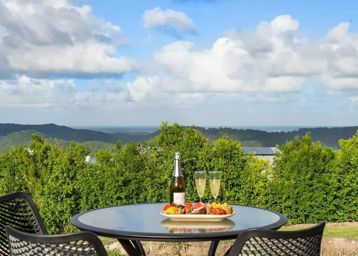 Deze gesitueerde in Ninderry New Luxe Villa - Coastal Views - 30 Min To Noosa Valdora ligt op 4 km afstand van het Poultree Park en biedt een zonneterras met uitzicht op de zee.